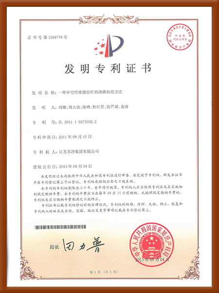 發明一種中空纖維膜組件的澆鑄粘結方法